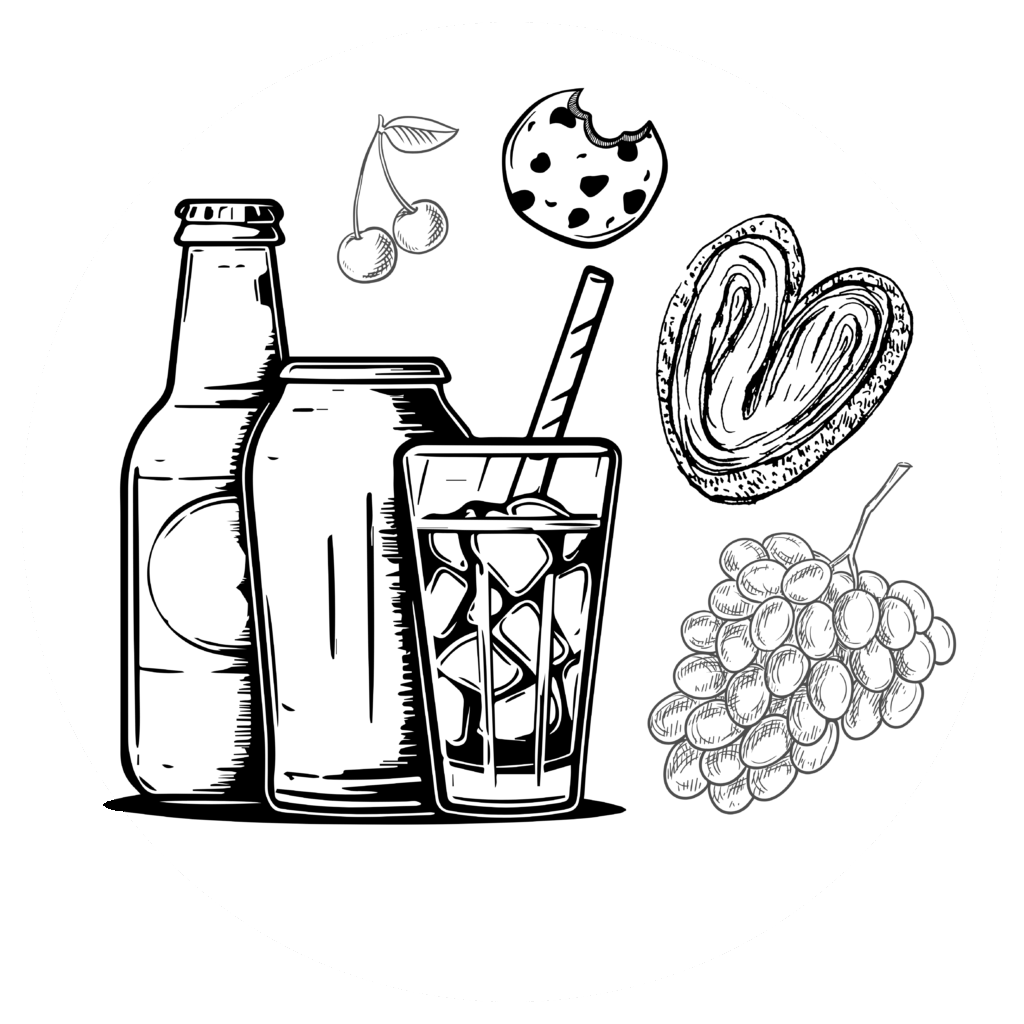 Snacks, Gebäck, Obst nach Verfügbarkeit